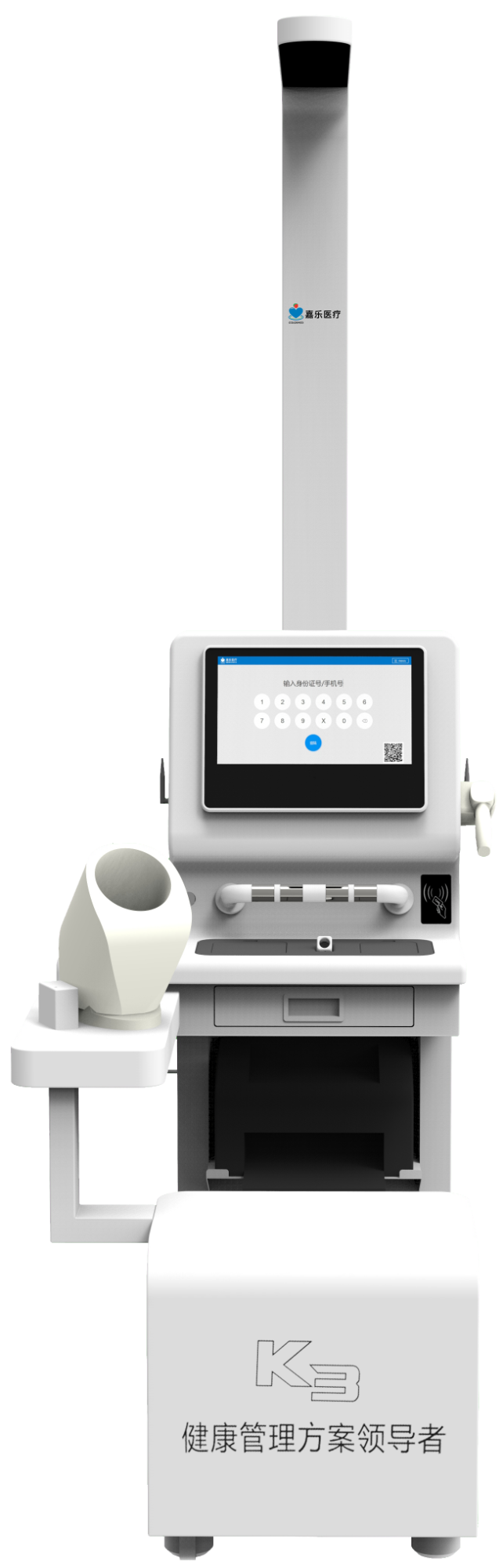 檢測功能:身高、體重、BMI、體溫、人體脂肪成分(脂肪含量、基礎代謝、水分含量、體脂肪量、體水分量、體型判斷等)、血壓、脈率、血氧、心電(6-12導)、腰圍、臀圍、腰臀比、血糖、尿酸、膽固醇、、中醫體質辨識檢測。支持拓展:血脂四項、骨密度、尿液分析、肺功能、心血管、中醫體質辨識…產品特點:一體化設計、安裝維護理簡單,安裝移動輪,移動方便;多種身份識別:二代身份證(IC卡)、手機、微信掃碼、指紋、人