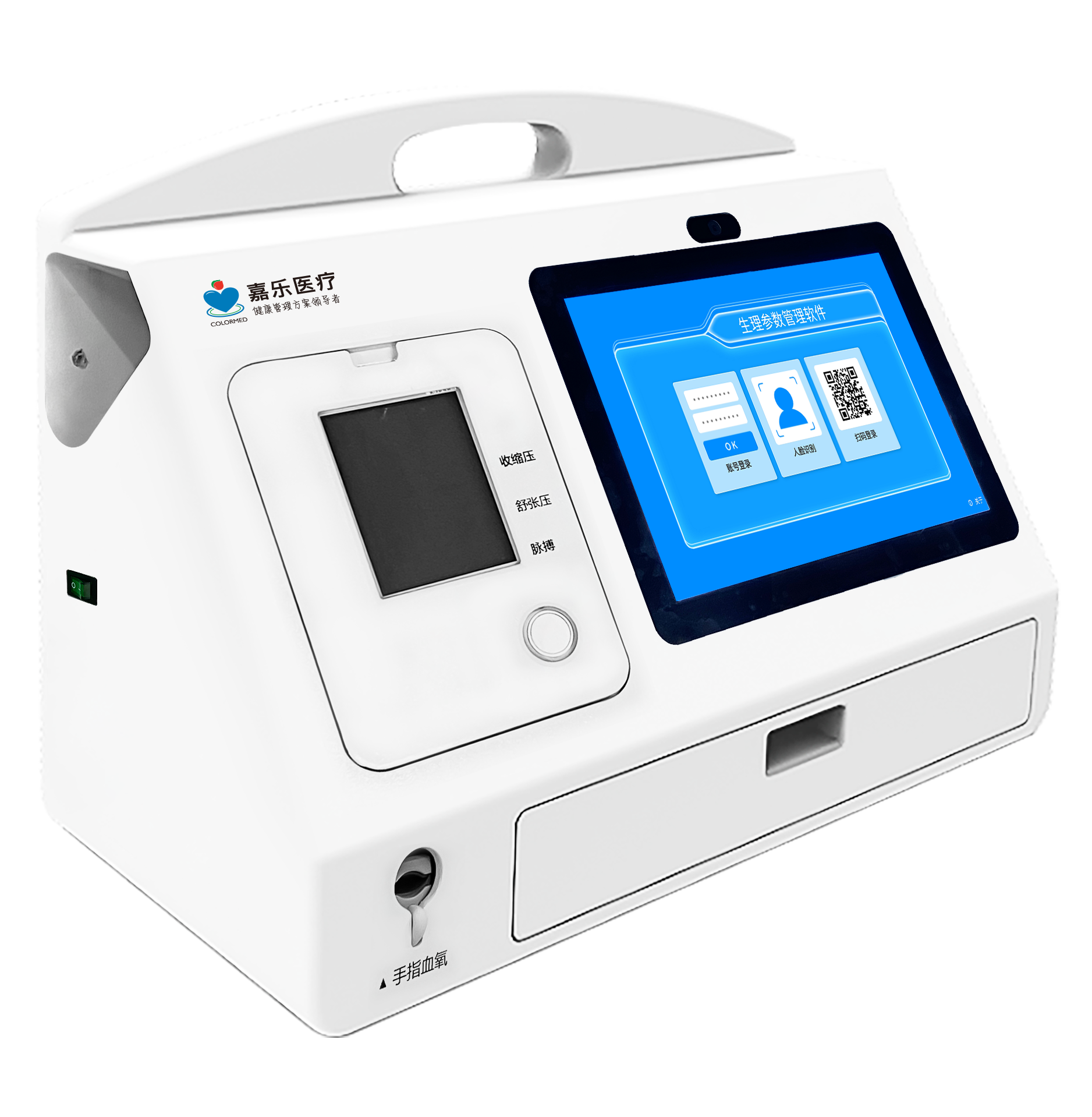 標(biāo)配檢測(cè)功能:血壓、脈率、體溫、血氧、血流灌注指數(shù)、心電(6-12導(dǎo))、血糖、尿酸、膽固醇、尿液分析。可擴(kuò)展功能:身高體重、肺功能...產(chǎn)品特點(diǎn)移動(dòng)方便:手提式便攜攜帶;身份識(shí)別:二代身份證(IC卡)、手機(jī)、微信掃碼、人臉;操作顯示:電容觸摸操作;操作指引:視頻動(dòng)畫(huà)、語(yǔ)音引導(dǎo),操作簡(jiǎn)單自助;人臉識(shí)別:高清攝像頭,人臉識(shí)別登錄 ;健康報(bào)告:熱敏快速自動(dòng)打印;系統(tǒng)管理:支持用戶(hù)設(shè)置、登錄設(shè)置、用戶(hù)管理